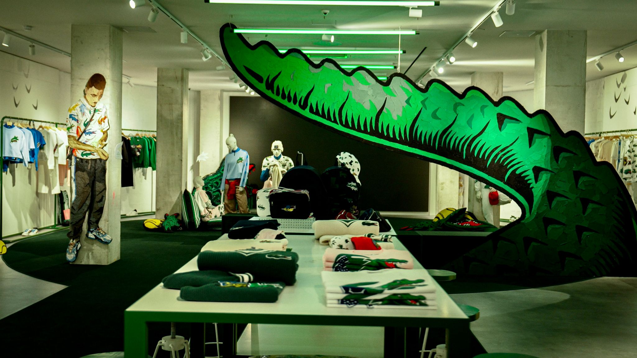 We collaborated with four international artists to build a monumental crocodile installation at the center of the space. More than a retail environment, the room embodies Lacoste’s ambition to merge sport, culture and creativity in an open, premium and inclusive way
